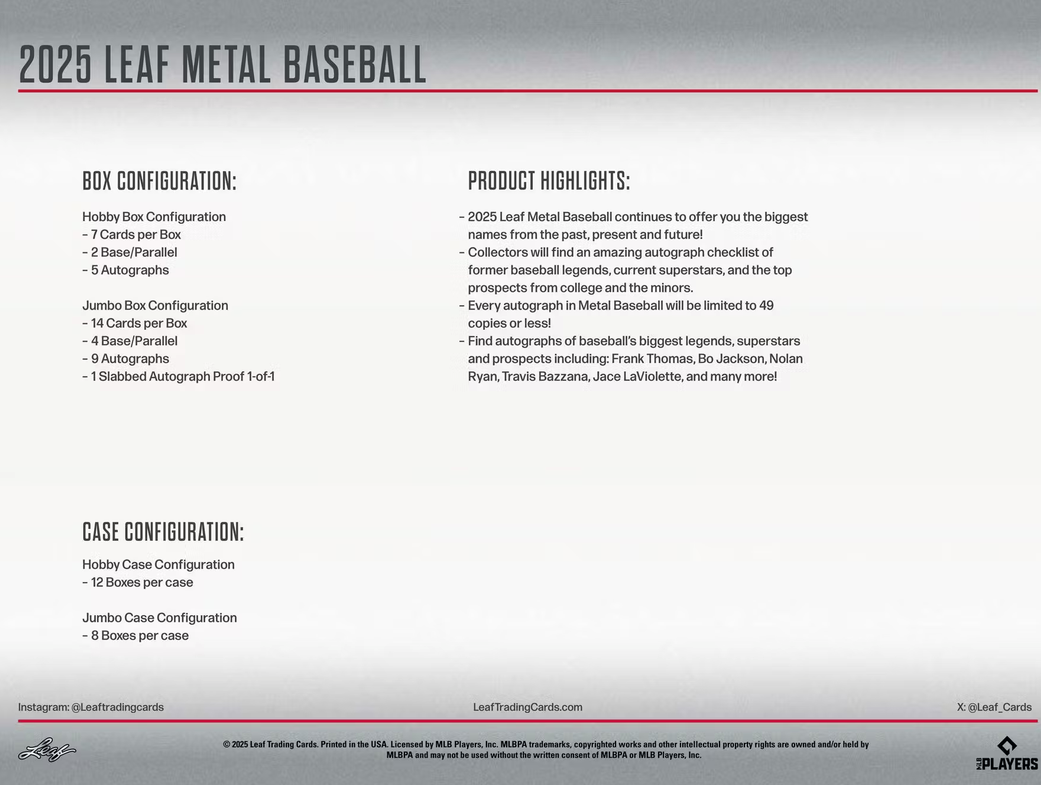 2025 Leaf Metal Baseball continues to offer you the biggest names from the past, present and future!