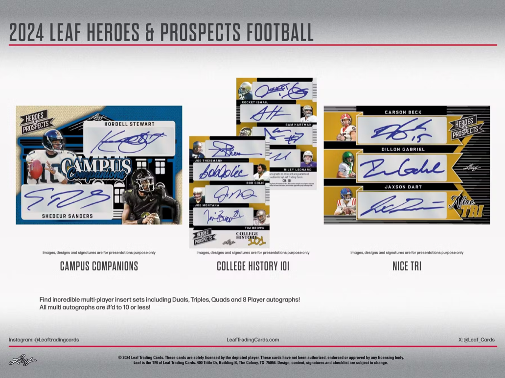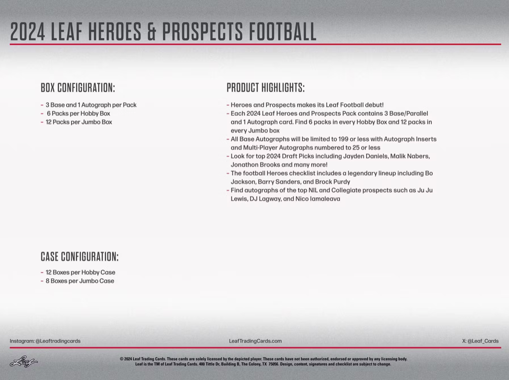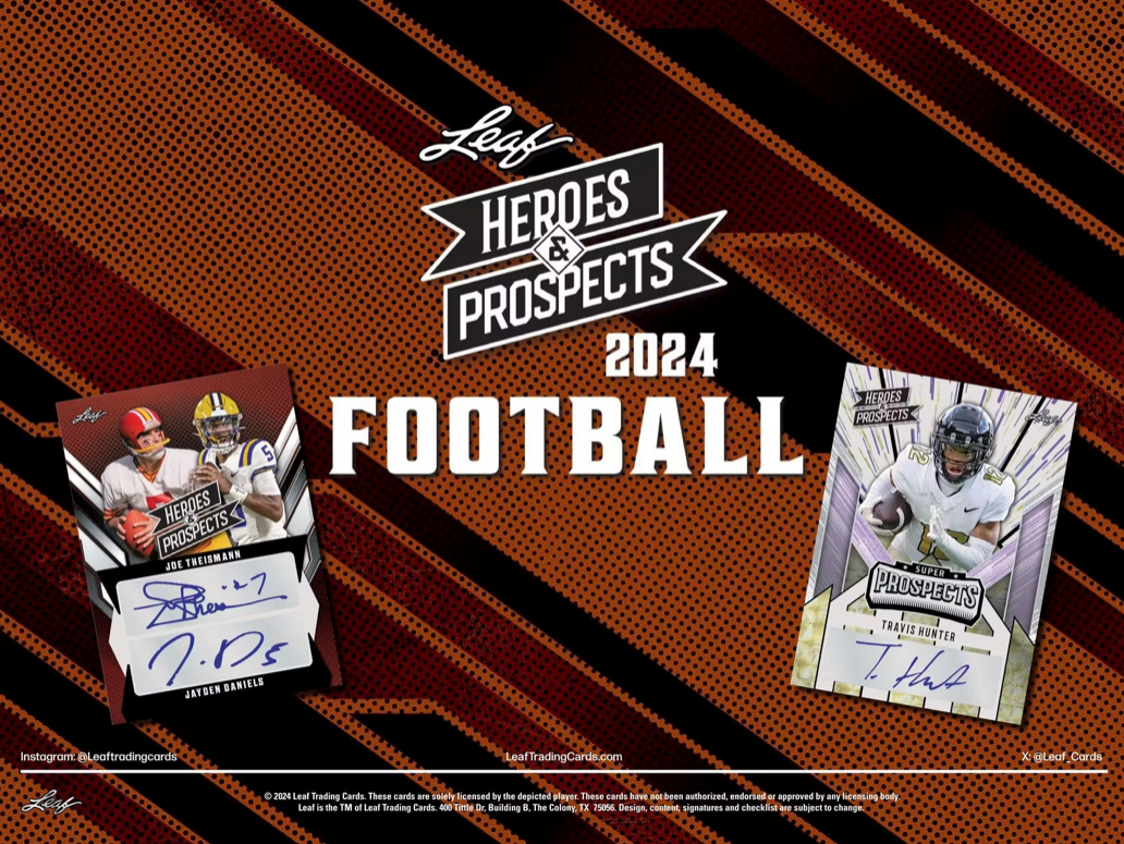 2024 Leaf Heroes & Prospects Football Hobby Jumbo Box 12 Packs per Box, 4 Cards per Pack