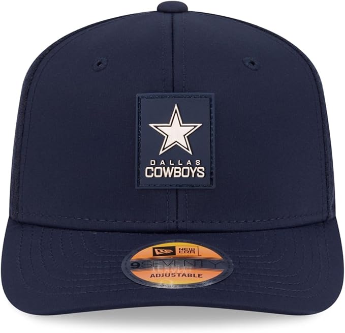 Gear up for the upcoming NFL season with the 2025 Sideline 9SEVENTY Adjustable Trucker Hat, the same headwear worn by Dallas Cowboys players, coaches, and staff on the sideline. This 9SEVENTY trucker hat offers a modern, adjustable fit with its structured crown and semi-curved visor. COOLERA technology wicks away sweat to keep you cool, while MICROERA technology acts as an anti-microbial to reduce odor. The quick-dry cushion sweatband provides a soft, comfortable feel, perfect for those hot weather games. Featuring a sewn-down silicone Dallas Cowboys patch on the crown, this hat is a stylish way to show your team pride.
