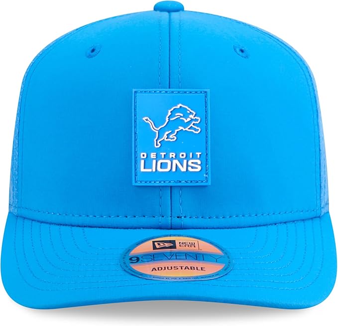 Gear up for the upcoming NFL season with the 2025 Sideline 9SEVENTY Adjustable Trucker Hat, the same headwear worn by Detroit Lions players, coaches, and staff on the sideline. This 9SEVENTY trucker hat offers a modern, adjustable fit with its structured crown and semi-curved visor. COOLERA technology wicks away sweat to keep you cool, while MICROERA technology acts as an anti-microbial to reduce odor. The quick-dry cushion sweatband provides a soft, comfortable feel, perfect for those hot weather games. Featuring a sewn-down silicone Detroit Lions patch on the crown, this hat is a stylish way to show your team pride.