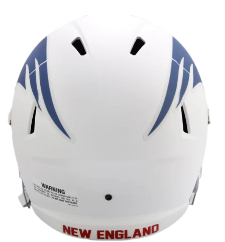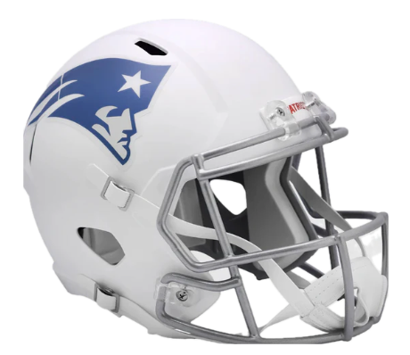 Based on one of the most popular on-field alternate designs, this collectible Speed Mini football helmet is made specifically for fans of the New England Patriots. At approx. 5.5 in. tall, this half-scale display helmet is perfect for all football fans and great for autographs. The helmet features a mini size Speed shell, the S2BD-SW-SP face mask, a 4-point chinstrap, and official paint and decals. The perfect collectible or gift!