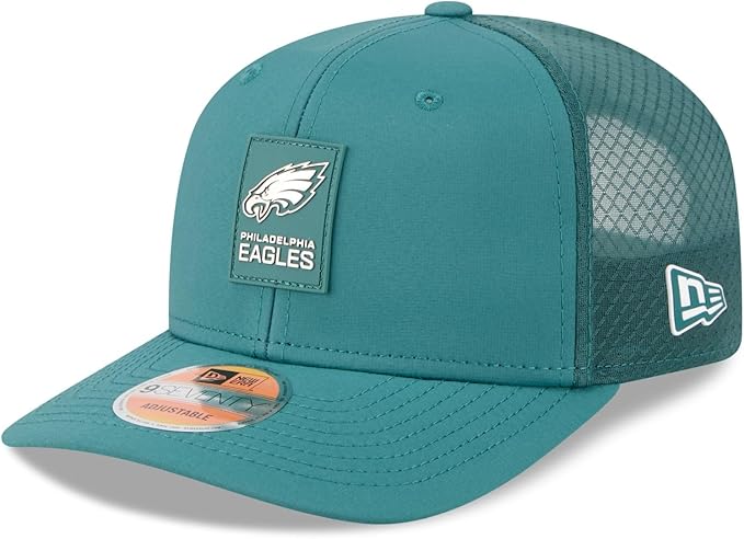 Gear up for the upcoming NFL season with the 2025 Sideline 9SEVENTY Adjustable Trucker Hat, the same headwear worn by Philadelphia Eagles players, coaches, and staff on the sideline. This 9SEVENTY trucker hat offers a modern, adjustable fit with its structured crown and semi-curved visor. COOLERA technology wicks away sweat to keep you cool, while MICROERA technology acts as an anti-microbial to reduce odor. The quick-dry cushion sweatband provides a soft, comfortable feel, perfect for those hot weather games. Featuring a sewn-down silicone Philadelphia Eagles patch on the crown, this hat is a stylish way to show your team pride.