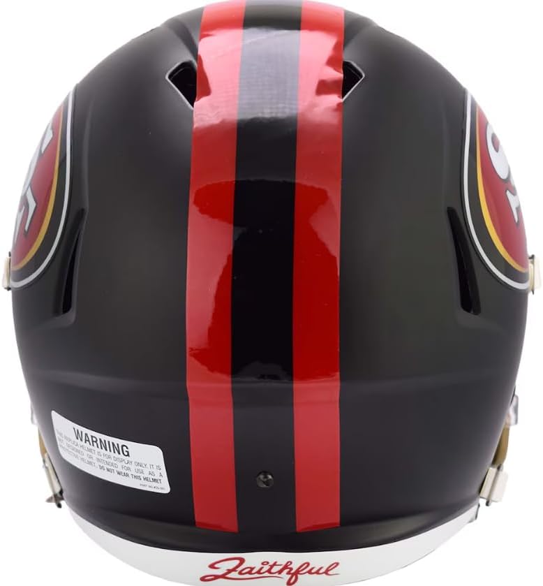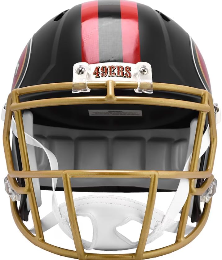 Based on one of the most popular on-field alternate designs, this collectible Speed Mini football helmet is made specifically for fans of the San Francisco 49ers. At approx. 5.5 in. tall, this half-scale display helmet is perfect for all football fans and great for autographs. The helmet features a mini size Speed shell, the S2BD-SW-SP face mask, a 4-point chinstrap, and official paint and decals. The perfect collectible or gift!