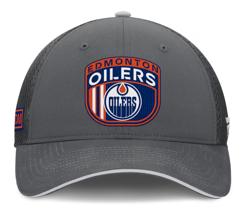 Get ready for game day with this Edmonton Oilers Authentic Pro Home Ice Trucker Adjustable Hat from Fanatics. As part of the Authentic Pro collection, it's built to mirror the same quality and style worn by the players and staff. With breathable mesh panels and a team patch on the front and side, this Edmonton Oilers hat is an ideal way to represent which squad you back on the ice.