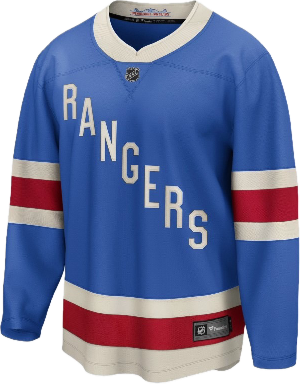 Showcase your unwavering support for the New York Rangers with this Fanatics Centennial Breakaway Jersey. Crafted with soft double-knit fabric, this midweight jersey offers superior comfort whether you're layering up or wearing it on its own. Showcasing sewn-down sublimated embossed twill cresting this jersey is perfect for flaunting your Rangers pride at every game.
