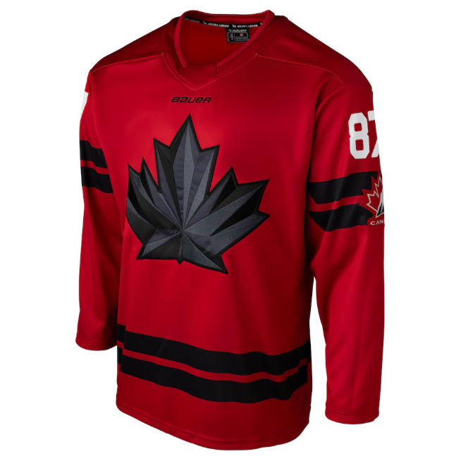 Cheer on Canada in a jersey inspired by what they'll wear on the international stage. Featuring the iconic Hockey Canada maple leaf, every thread on this replica jersey puts your team pride on full display. Designed with a classic hockey jersey oversized fit, mesh under-sleeve panels for ventilation and embroidered fabric applique graphics, this jersey combines comfort and style for the ultimate fan experience.
