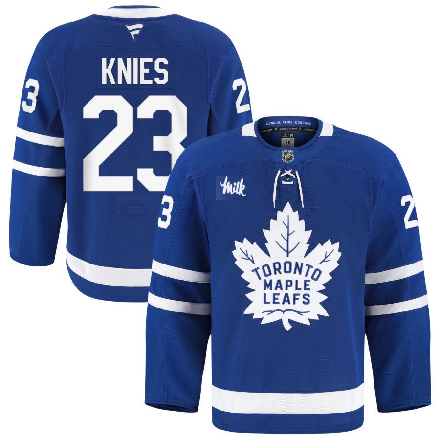 Men's Toronto Maple Leafs Fanatics Blue Home Authentic Pro Jersey - Matthew Knies With Milk