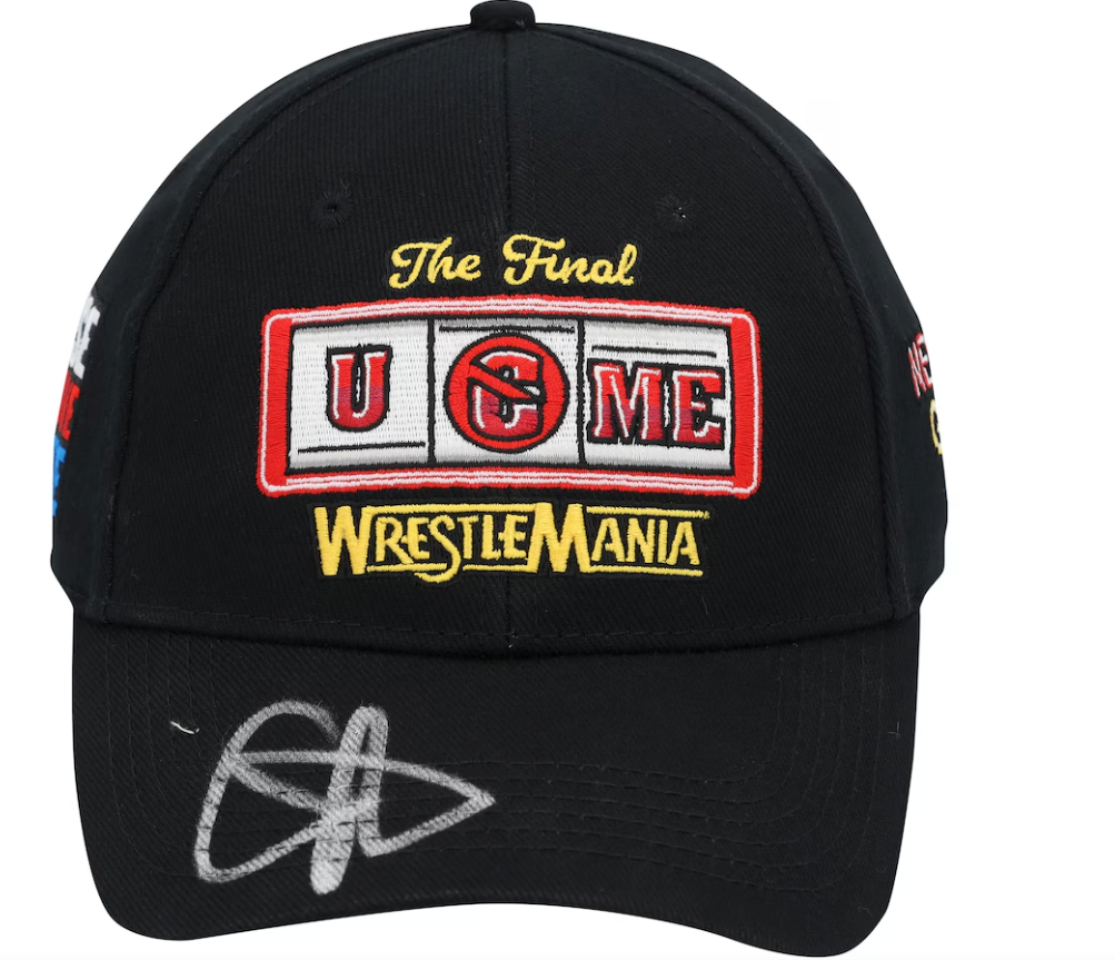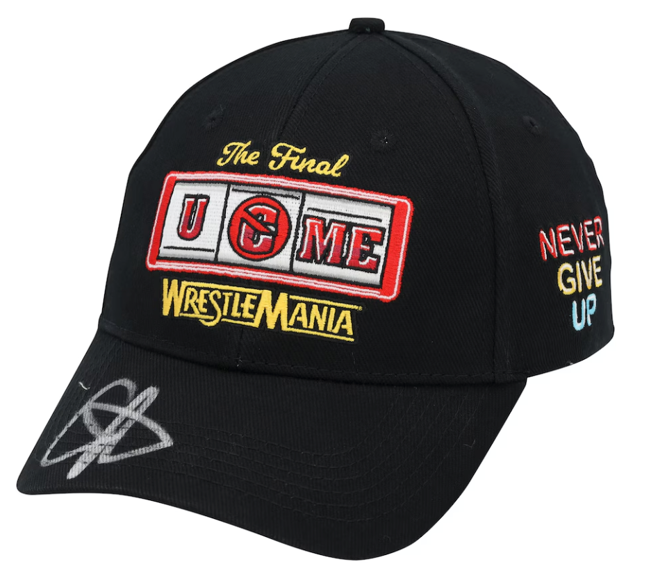 Elevate your collection of WWE memorabilia with this John Cena autographed WrestleMania 41 Uniform Cap. It features eye-catching details and a distinct signature from the iconic Superstar. Additionally, this collectible includes an individually numbered, tamper-evident hologram that can be verified online to certify authenticity.