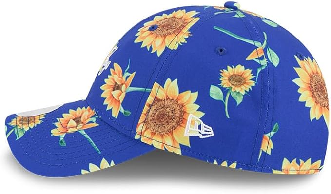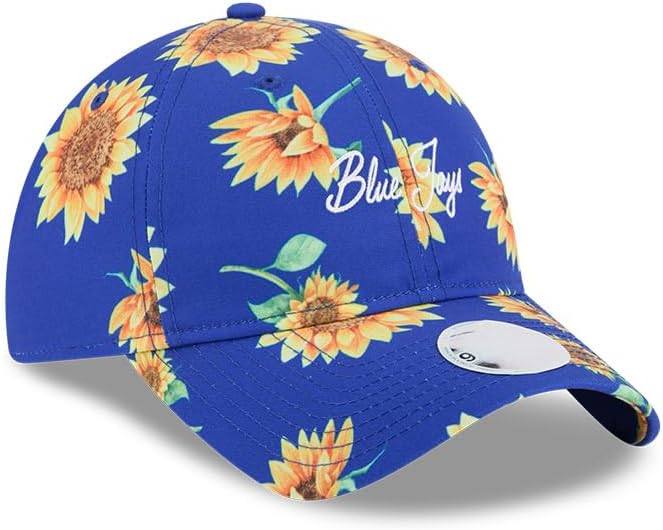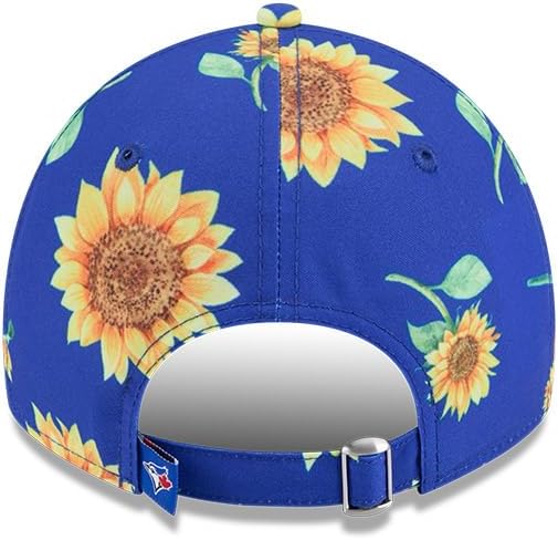 The Toronto Blue Jays Sunflower Print 9TWENTY Adjustable Hat features an embroidered Blue Jays script at the front panels. Additional details include sunflower print throughout and an adjustable D-Ring closure at the rear.