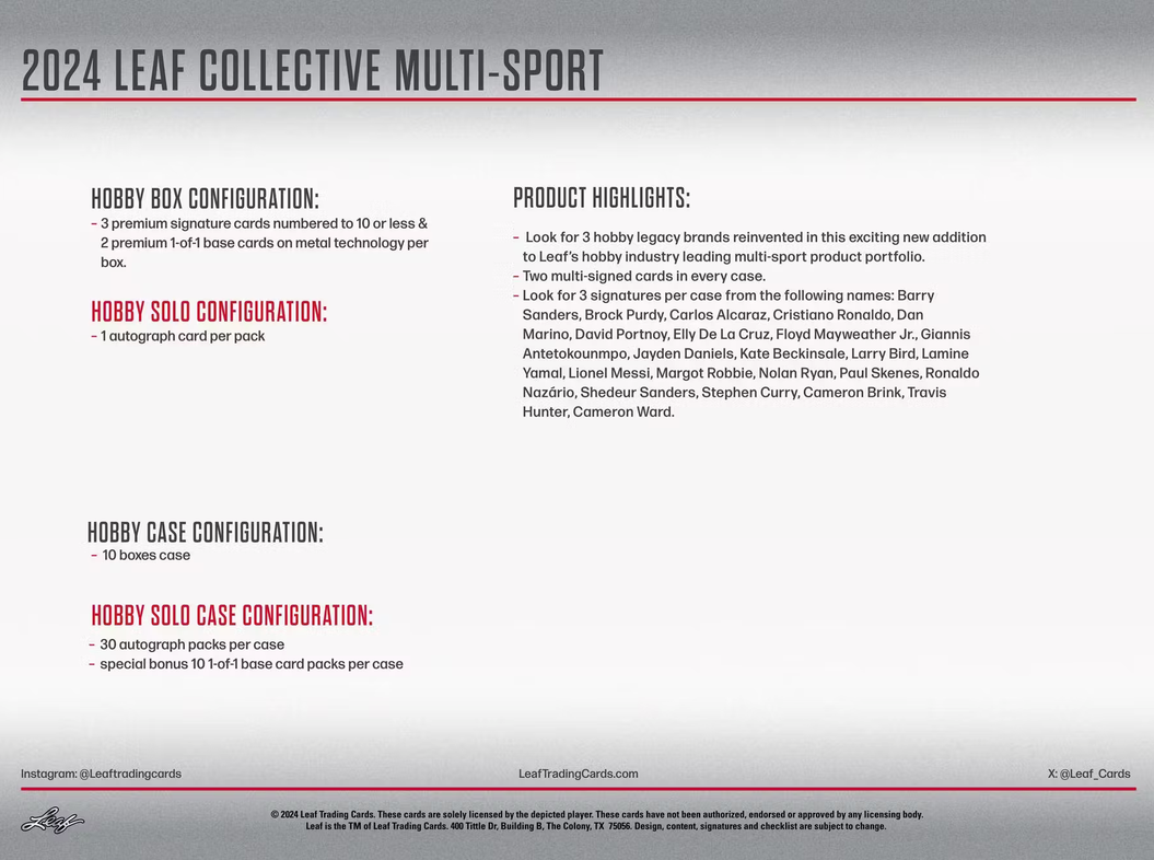 2024 Leaf Collective Multisport Hobby Box 5 Cards per Box