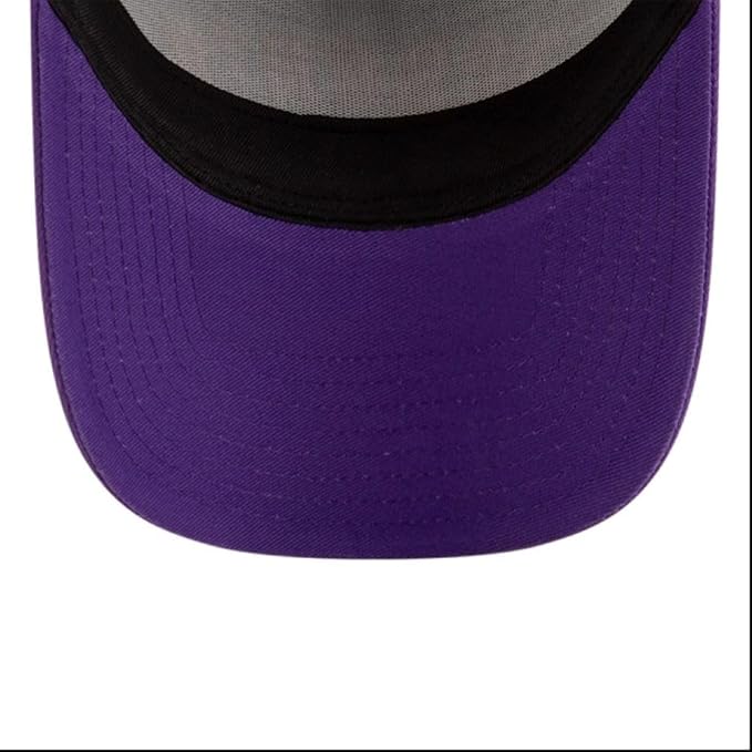 The Toronto Raptors Classic Edition Birdseye Blue 9FORTY A-Frame Trucker features an embroidered Raptorslogo at the front panels with a team logo at the right-wear side. Additional details include a mesh back, a snapback closure at the rear, and a Purple undervisor.