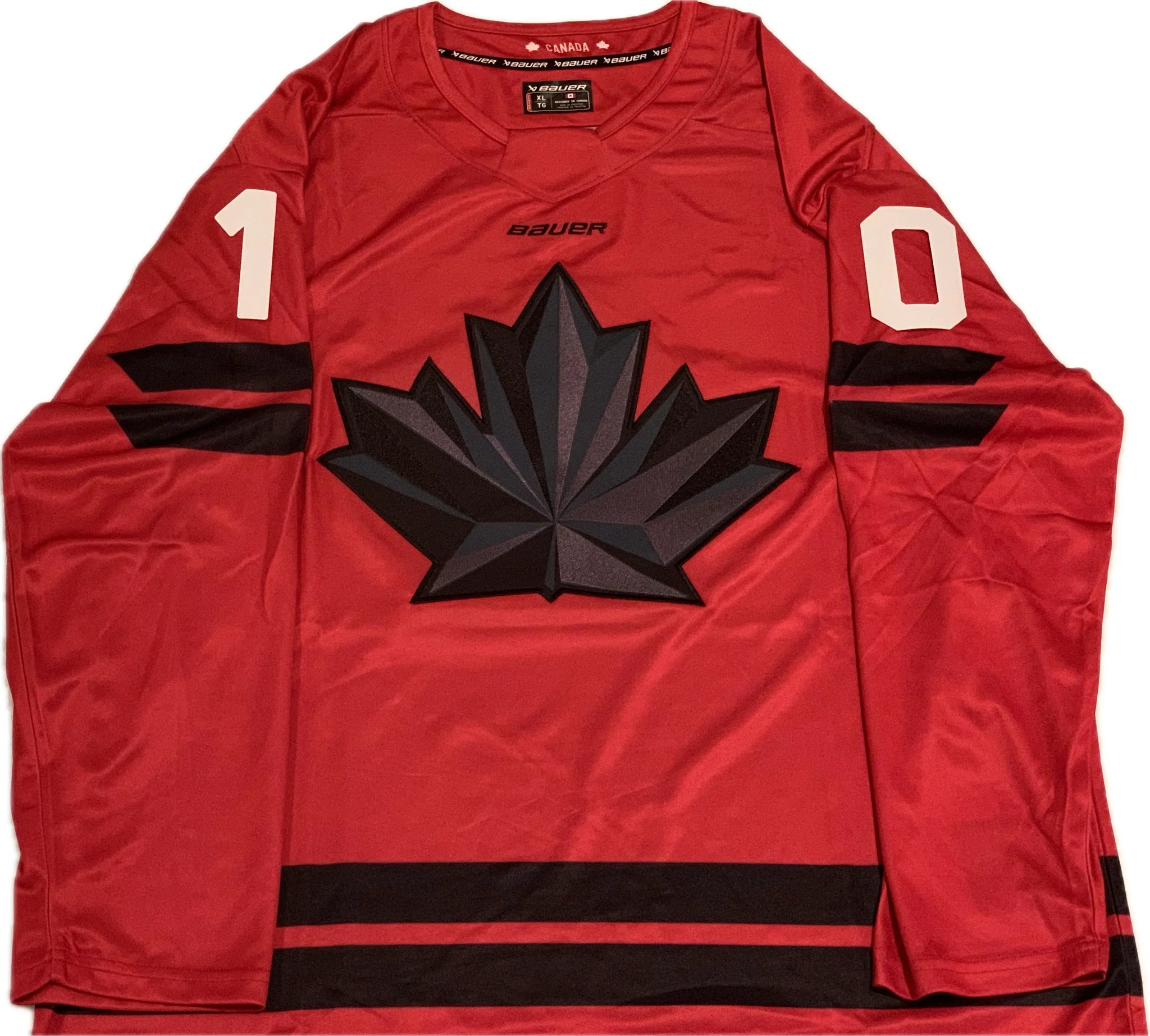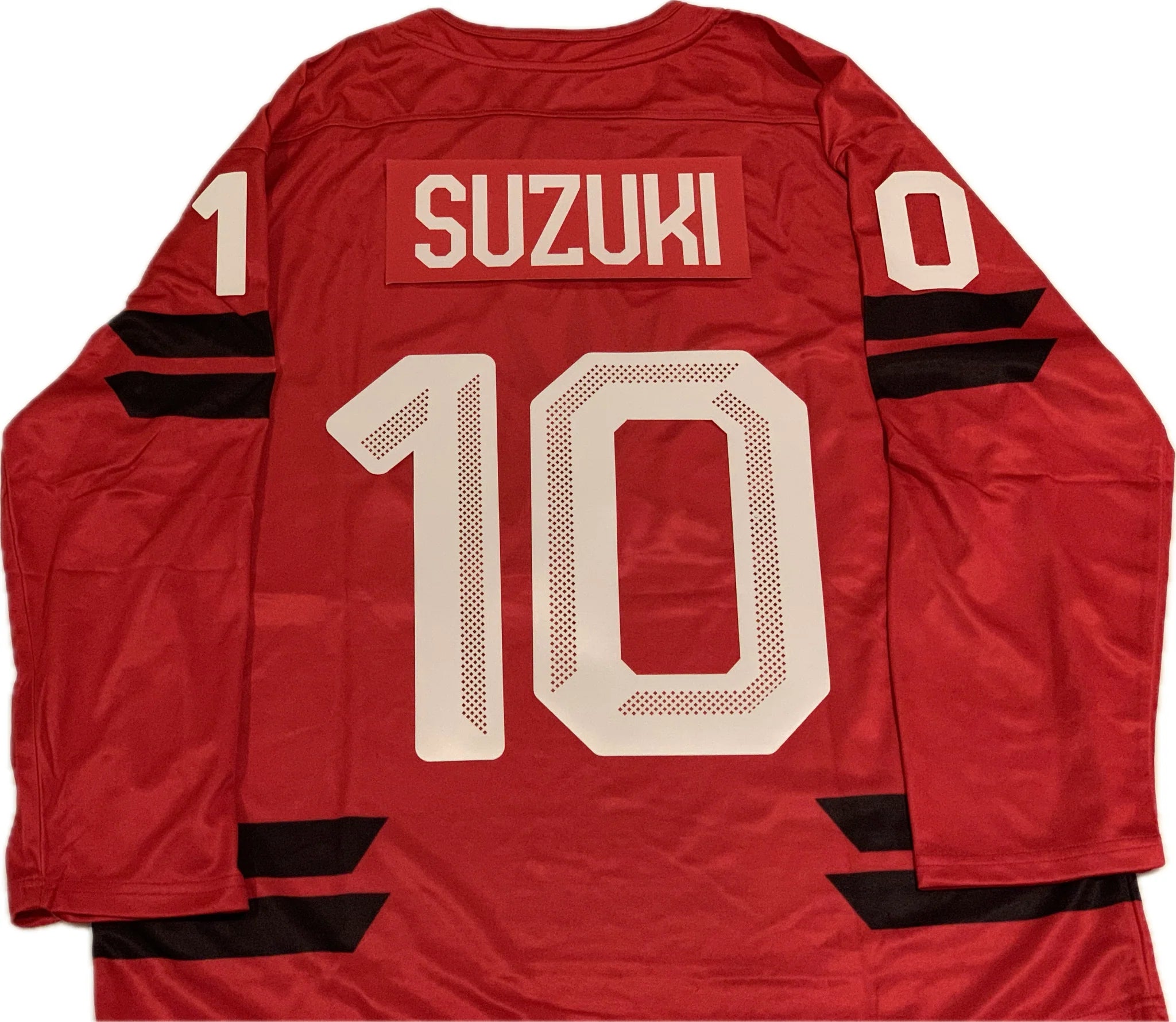 Get ready for the hunt of another Canadian gold medal with this Semi Pro Jersey. As one of the best players in the NHL today, Nick Suzuki is poised to lead Canada on the world stage. This jersey exudes the aura of Canada's storied hockey history with vibrant screen-printed graphics and an embroidered fabric applique. The mesh under-sleeve panel ensures ventilation, keeping you comfortable while you cheer on Team Canada.