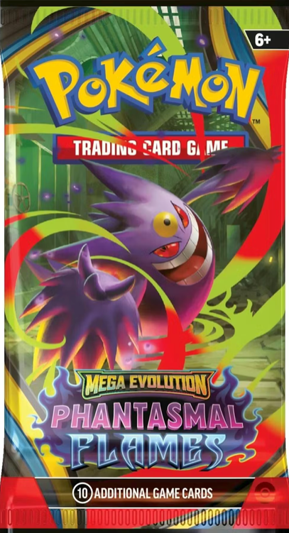 Expand your collection with this Booster Bundle containing six booster packs from Pokemon TCG: Mega Evolution-Phantasmal Flames