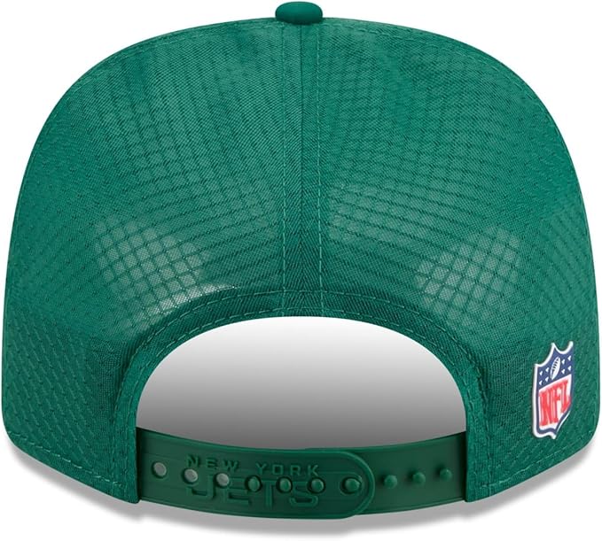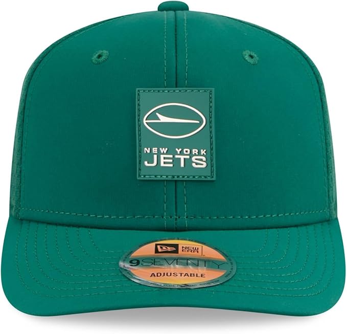 Gear up for the upcoming NFL season with the 2025 Sideline 9SEVENTY Adjustable Trucker Hat, the same headwear worn by New York Jets players, coaches, and staff on the sideline. This 9SEVENTY trucker hat offers a modern, adjustable fit with its structured crown and semi-curved visor. COOLERA technology wicks away sweat to keep you cool, while MICROERA technology acts as an anti-microbial to reduce odor. The quick-dry cushion sweatband provides a soft, comfortable feel, perfect for those hot weather games. Featuring a sewn-down silicone New York Jets patch on the crown, this hat is a stylish way to show your team pride.