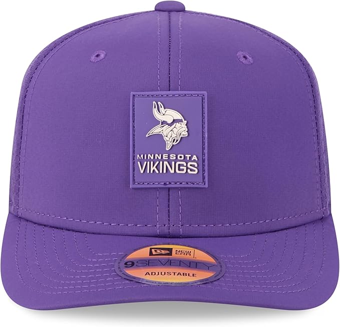 Gear up for the upcoming NFL season with the 2025 Sideline 9SEVENTY Adjustable Trucker Hat, the same headwear worn by Minnesota Vikings players, coaches, and staff on the sideline. This 9SEVENTY trucker hat offers a modern, adjustable fit with its structured crown and semi-curved visor. COOLERA technology wicks away sweat to keep you cool, while MICROERA technology acts as an anti-microbial to reduce odor. The quick-dry cushion sweatband provides a soft, comfortable feel, perfect for those hot weather games. Featuring a sewn-down silicone Minnesota Vikings patch on the crown, this hat is a stylish way to show your team pride.