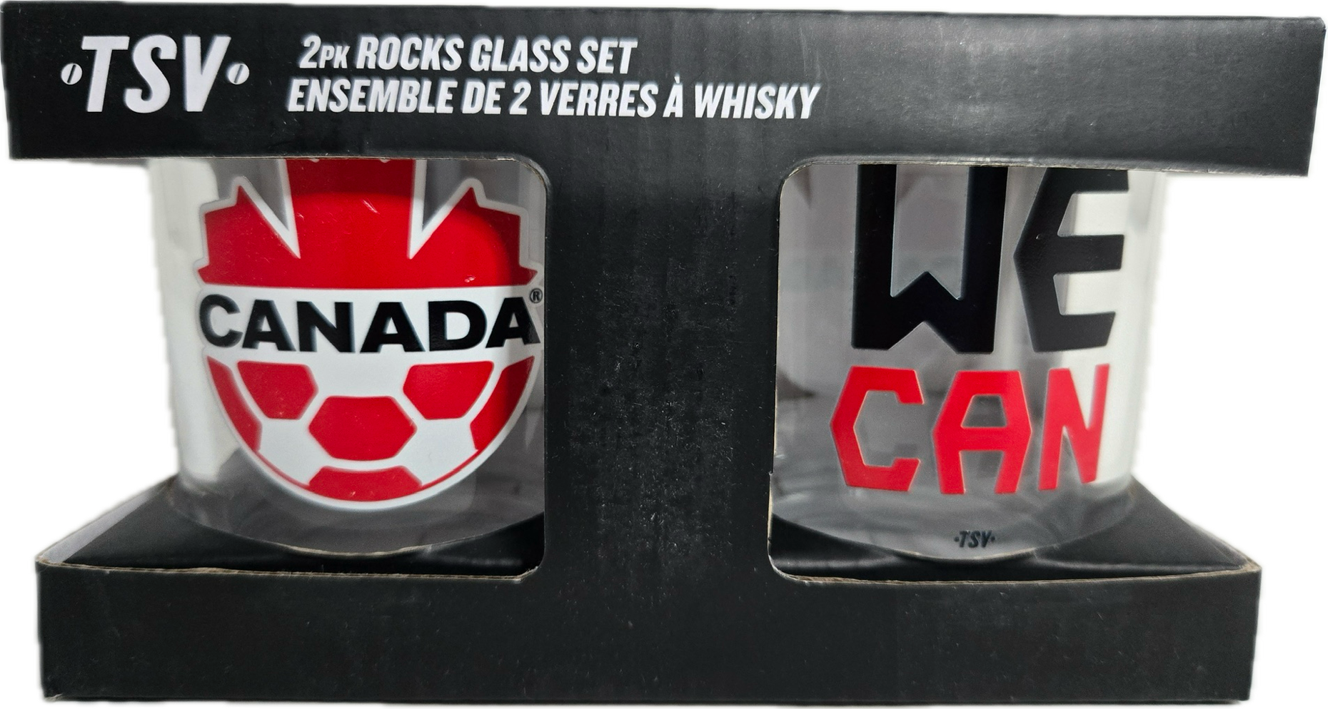 Team Canada Current Logo Rocks Glass Set of Two 10oz International Soccer - The Sports Vault