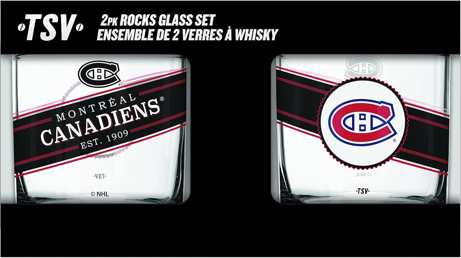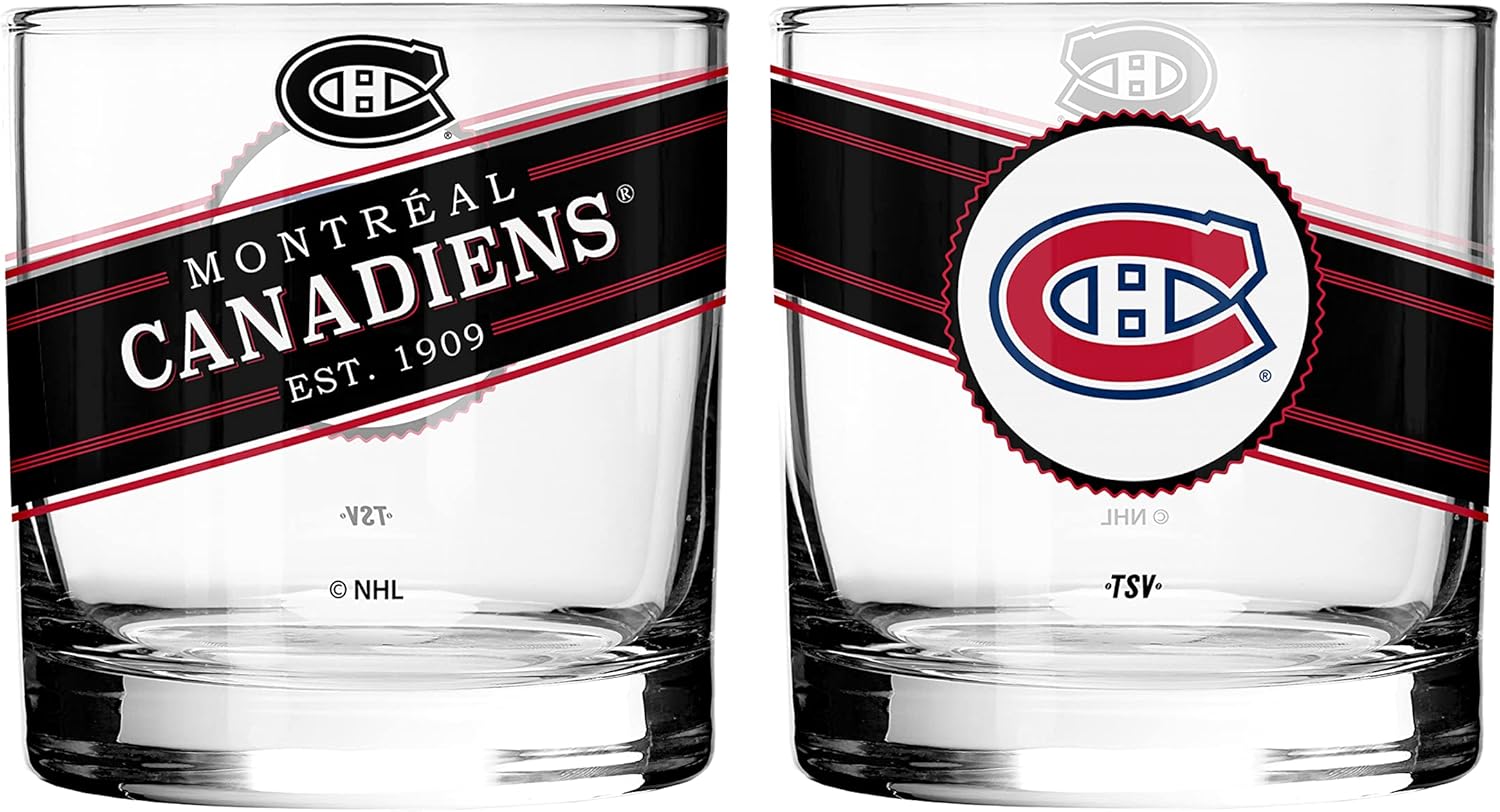 Montreal Canadiens Black Label Rocks Glass Set of Two 10oz NHL Hockey - The Sports Vault