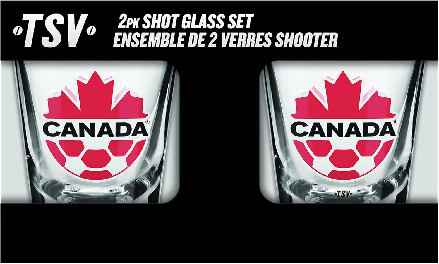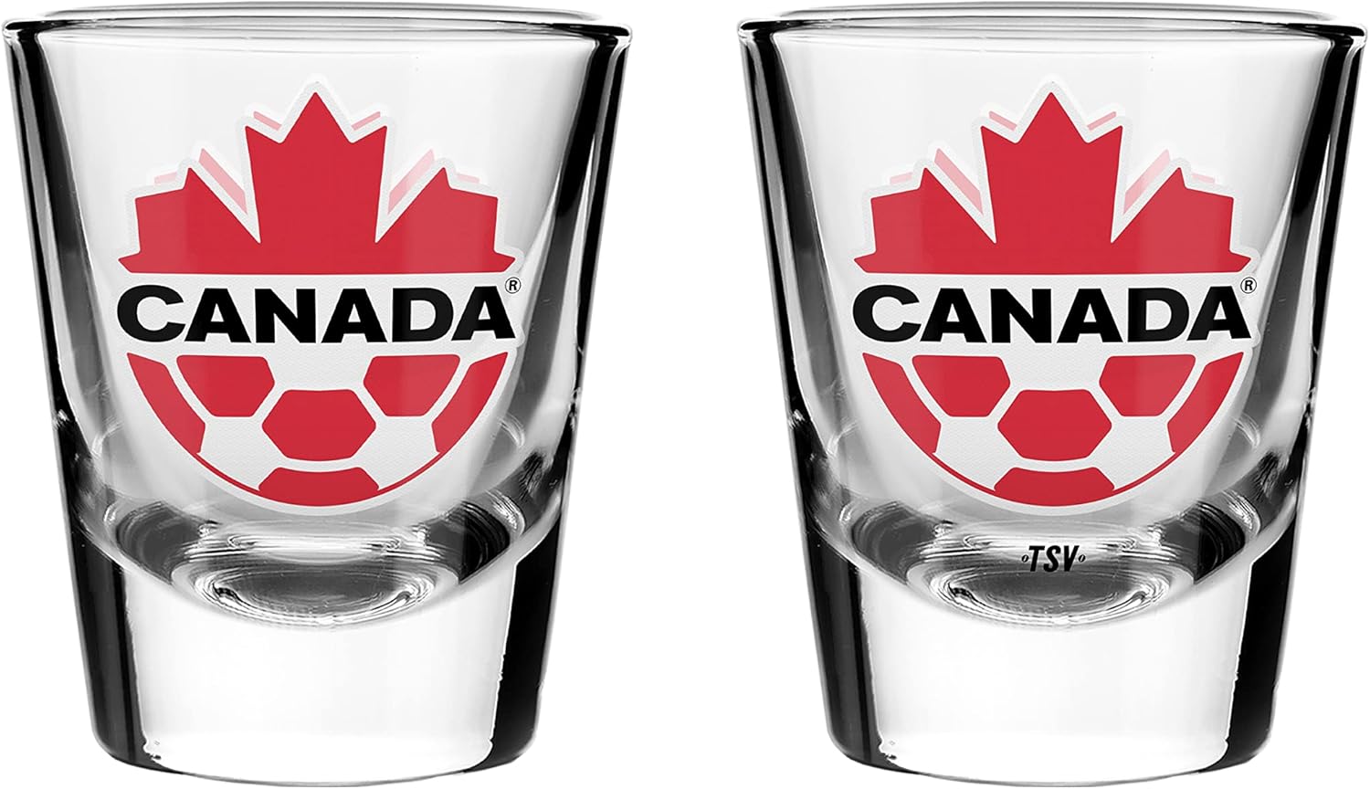 Team Canada Current Logo Shot Glasses Set of Two 2oz International Soccer - The Sports Vault