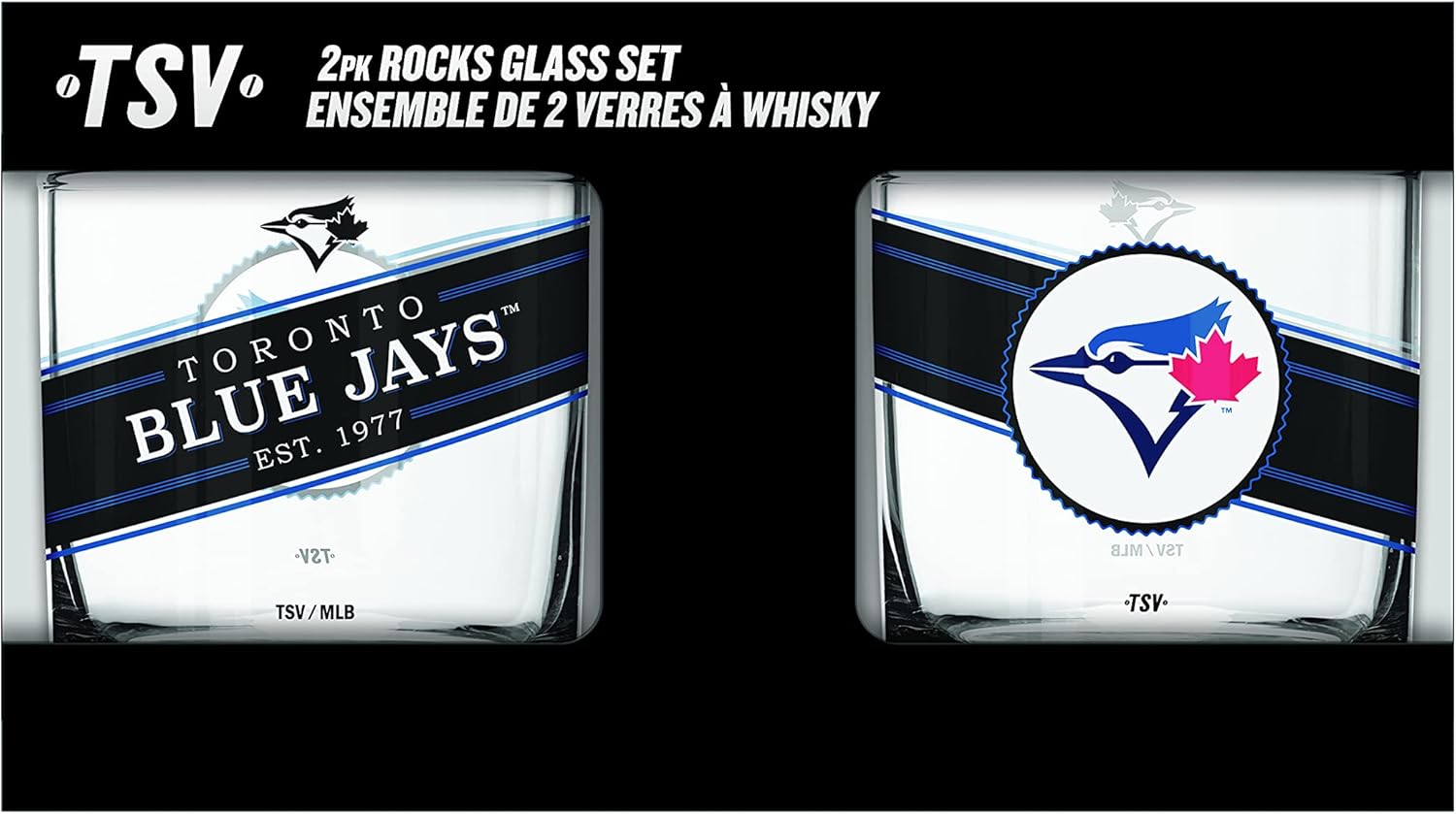 Toronto Blue Jays Black Label Rocks Glass Set of Two 10oz MLB Baseball - The Sports Vault