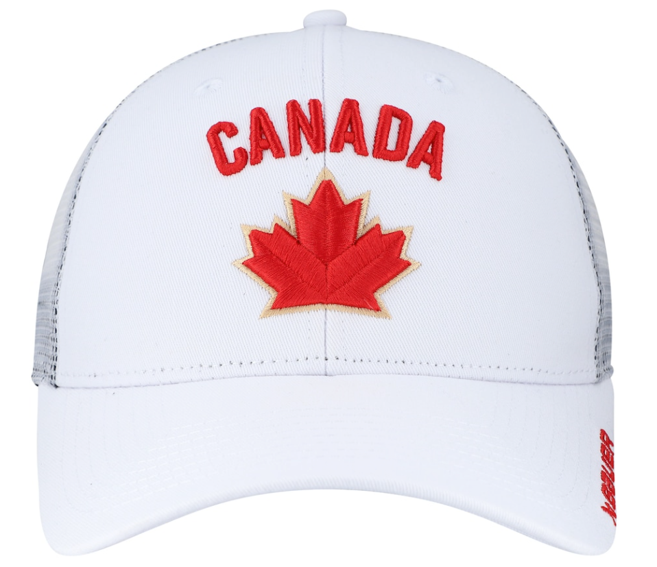 Cheer on Hockey Canada with this adjustable Trucker Hat. With a classic trucker design, this Hockey Canada hat features two front panels with eyelets and mesh mid and rear panels, offering enhanced breathability for all-day comfort. The raised embroidered graphics on the front proudly display your Hockey Canada pride, making it the perfect accessory for cheering on Team Canada.