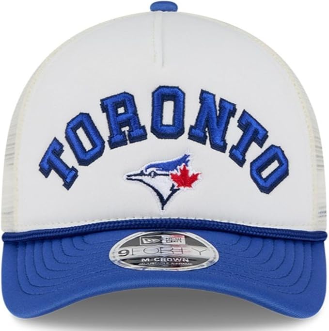 New Era 9FORTY MLB Toronto Blue Jays Chrome Arch M-Crown A-Frame Rope Adjustable Trucker Snapback Cap - White