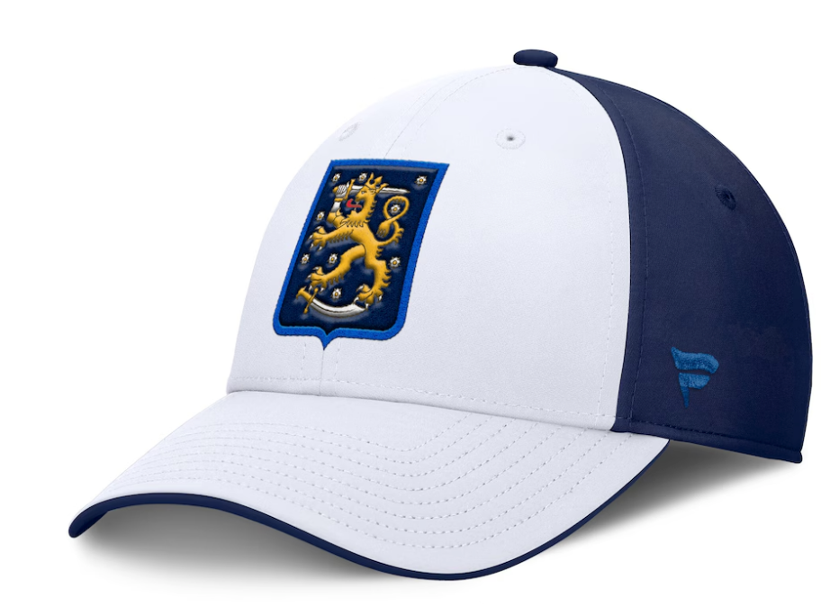 Men's Finland Fanatics White/Navy 2025 4 Nations Face-Off Stretch Fit Hat