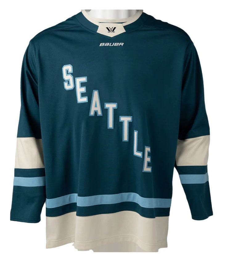 Show your game day spirit and unite with other fans in the Adult PWHL Seattle Bauer Replica Home Jersey. Featuring premium fabrics, mesh under-sleeve panel for ventilation, embroidered team crest, printed graphics plus the same colors and designs worn on home ice — every thread on this jersey puts the pride for your team on full display.