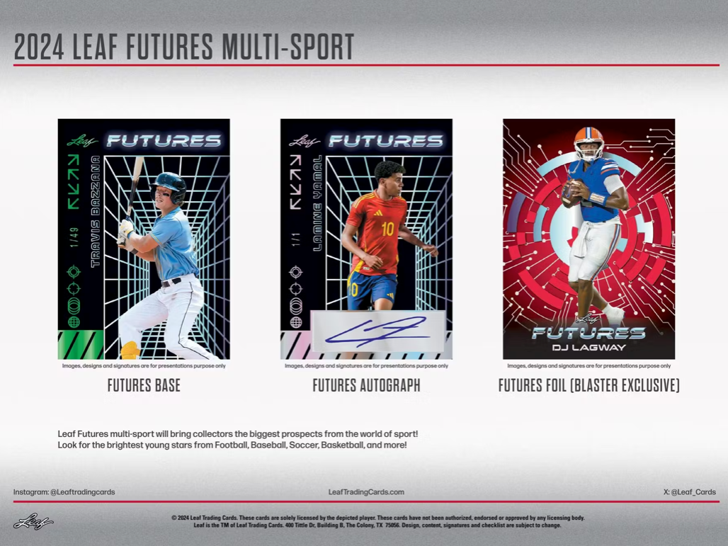 FUTURES BASE / FUTURES AUTOGRAPH: Leaf Futures multi-sport will bring collectors the biggest prospects from the world of sport! Look for the brightest young stars from Football, Baseball, Soccer, Basketball, and more!