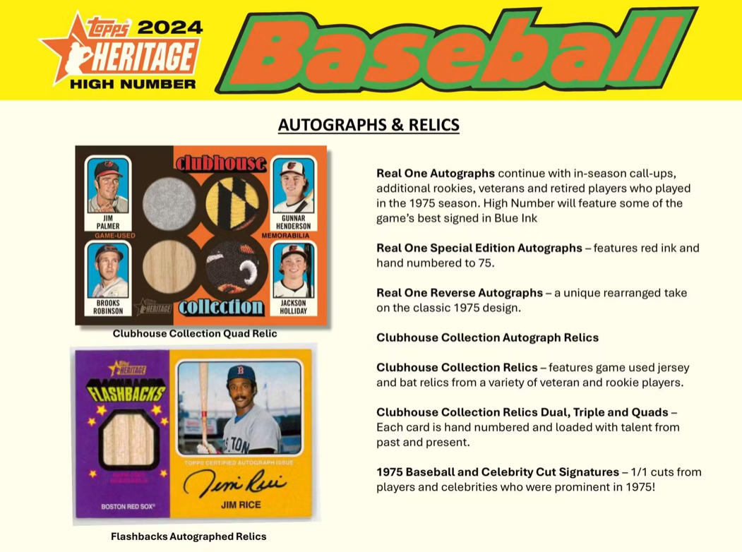 This set contains Real One Autographs, Clubhouse Collection Relics, 1975 Minis to complete the set, Base Variations, New Inserts and additional cards celebrating the 1975 and 2024 seasons!