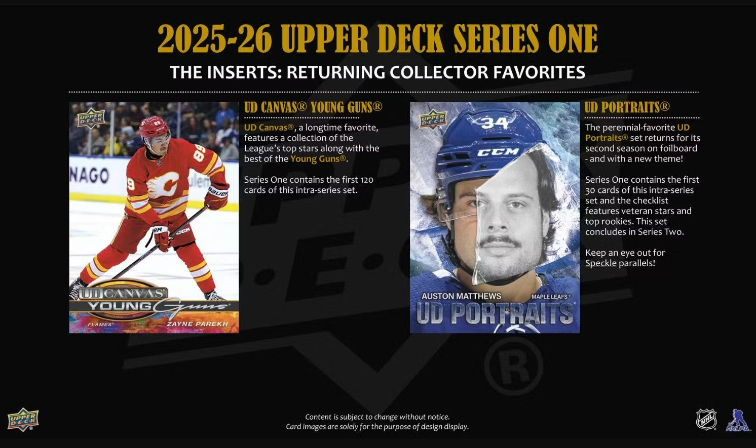 The perennial-favorite UD Portraits set returns for its second season on foilboard - and with a new theme! Series 1 contains the first 30 cards of this intra-series set and the checklist features veteran stars and top rookies. There are also Speckle parallels!