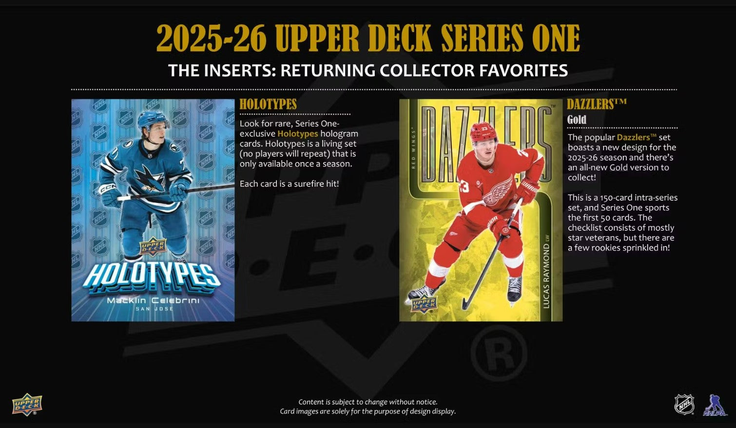 The popular Dazzlers set boasts a new design for the 2025-26 season and there's an all-new Gold version to collect! This is a 150-card intra-series set, and Series 1 sports the first 50 cards. The checklist consists of mostly star veterans, but there are a few rookies sprinkled in! Look for a larger number of rookies in Series 2 and Extended Series.