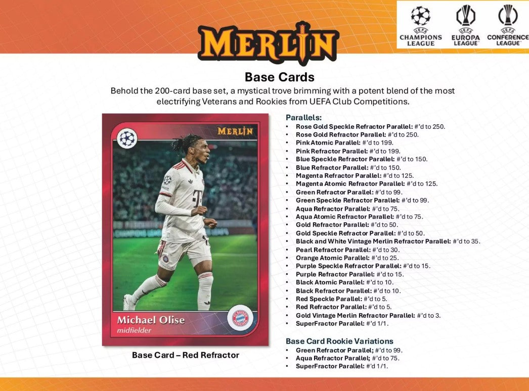 Amongst the base set lies a spellbinding 200 subjects, each of whom has graced the enchanted stages of the UEFA Champions League, UEFA Europa League or UEFA Conference League.