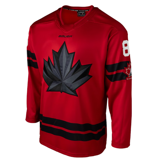Get ready for the hunt of another Canadian gold medal with this Semi Pro Jersey. As one of the best players in the NHL today, Cale Makar is poised to lead Canada on the world stage. This jersey exudes the aura of Canada's storied hockey history with vibrant screen-printed graphics and an embroidered fabric applique. The mesh under-sleeve panel ensures ventilation, keeping you comfortable while you cheer on Team Canada.