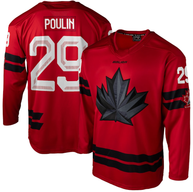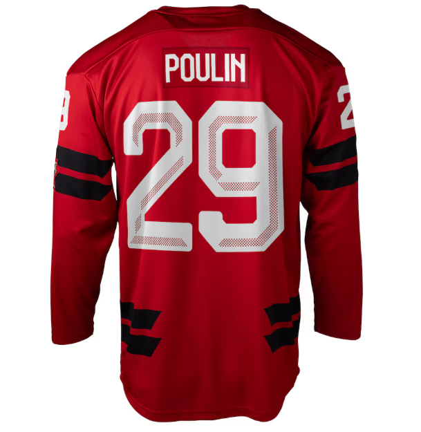 Get ready for the hunt of another Canadian gold medal with this Semi Pro Jersey. As one of the best players in the NHL today, Marie-Philip Poulin is poised to lead Canada on the world stage. This jersey exudes the aura of Canada's storied hockey history with vibrant screen-printed graphics and an embroidered fabric applique. The mesh under-sleeve panel ensures ventilation, keeping you comfortable while you cheer on Team Canada.