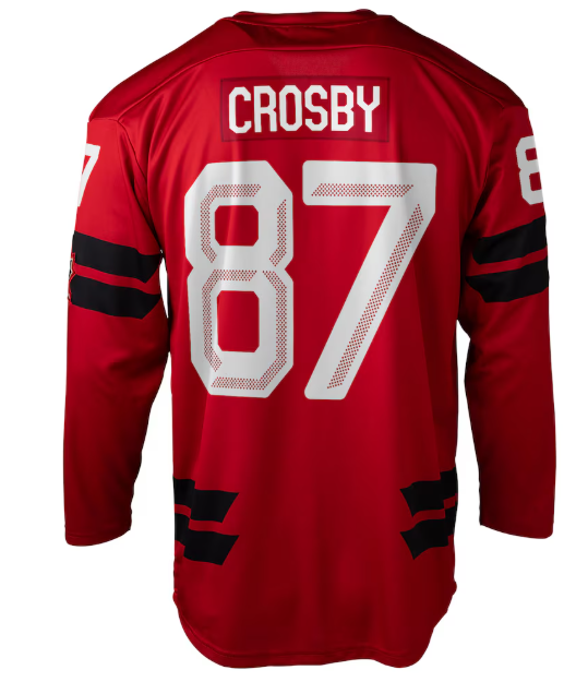 Get ready for the hunt of another Canadian gold medal with this Semi Pro Jersey. As one of the best players in the NHL today, Sidney Crosby is poised to lead Canada on the world stage. This jersey exudes the aura of Canada's storied hockey history with vibrant screen-printed graphics and an embroidered fabric applique. The mesh under-sleeve panel ensures ventilation, keeping you comfortable while you cheer on Team Canada.
