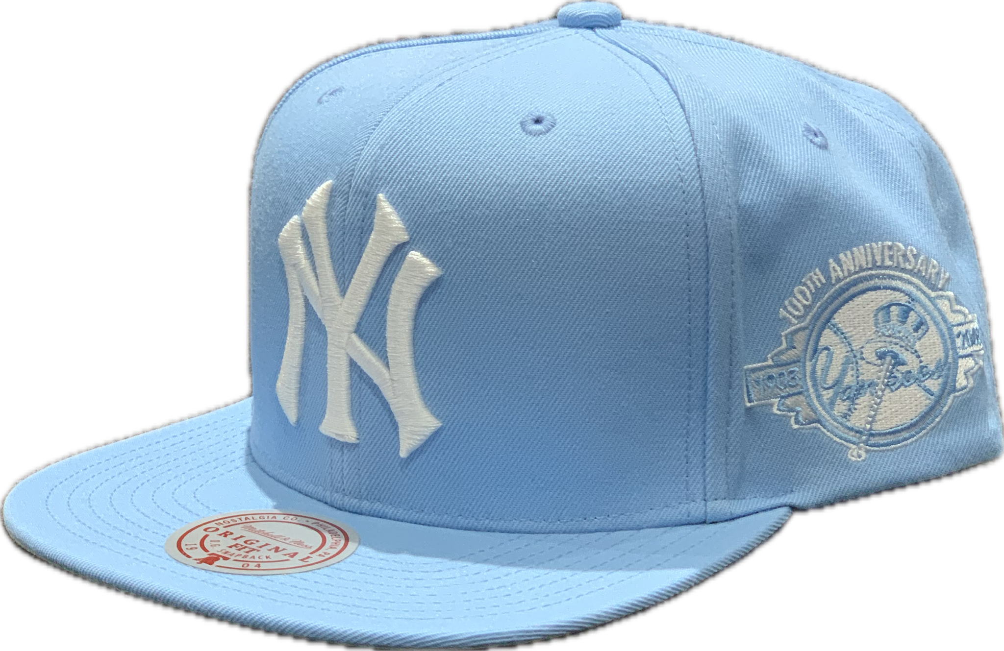 Add to your MLB headwear collection with the New York Yankees MLB Mitchell & Ness Men's Basic Blue Gleam Side Patch Snapback. This snapback will bring you back in time featuring iconic team logo a the perfect way to show off your style and pride for your favourite baseball team. Includes adjustable Snapback for the perfect fit.