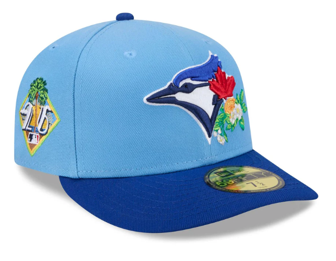 Gear up for 2026 Spring Training with this Toronto Blue Jays 59FIFTY Fitted Hat with Patch. The 59FIFTY is an icon in sport and street culture thanks to its status as the official on-field cap of MLB. This New Era hat features premium details such as a raised embroidered team logo on the front crown with floral details and a contrast-color visor and undervisor with the team's Spring Training home embroidered underneath. The 2026 Spring Training patch is proudly displayed on the right side panel, while a sublimated interior lining with a festive pattern adds a touch of tropical flair. Show your support for the Toronto Blue Jays as they prepare for another exciting season in style.