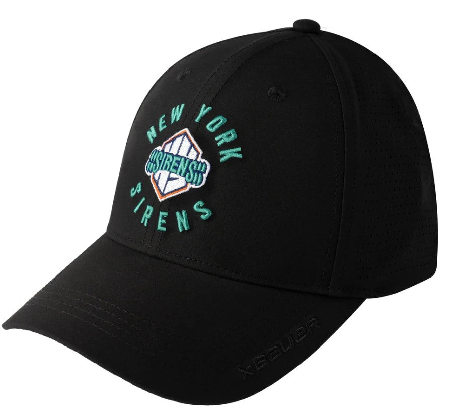Top off your game-day look with the PWHL New York Sirens Unisex Bauer Performance Logo Hat. Made from 100% polyester, this adjustable performance cap features perforated side panels for breathability and a Spansnap™ stretch closure for a perfect, comfortable fit. The hat proudly displays the PWHL team logo on the front and the league logo on the back, making it the ultimate accessory for any fan.