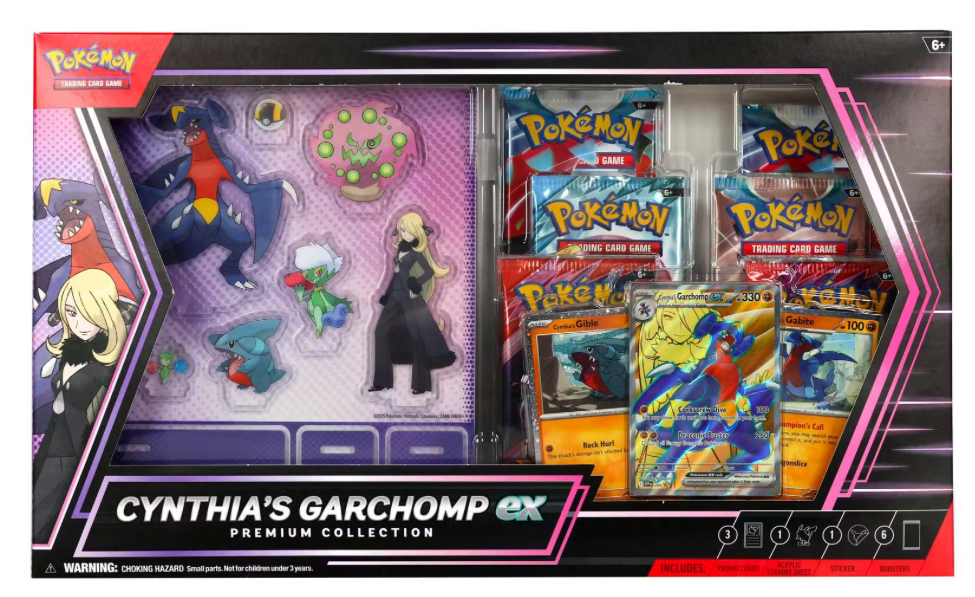 The Pokemon TCG: Cynthia's Garchomp ex Premium Collection includes: