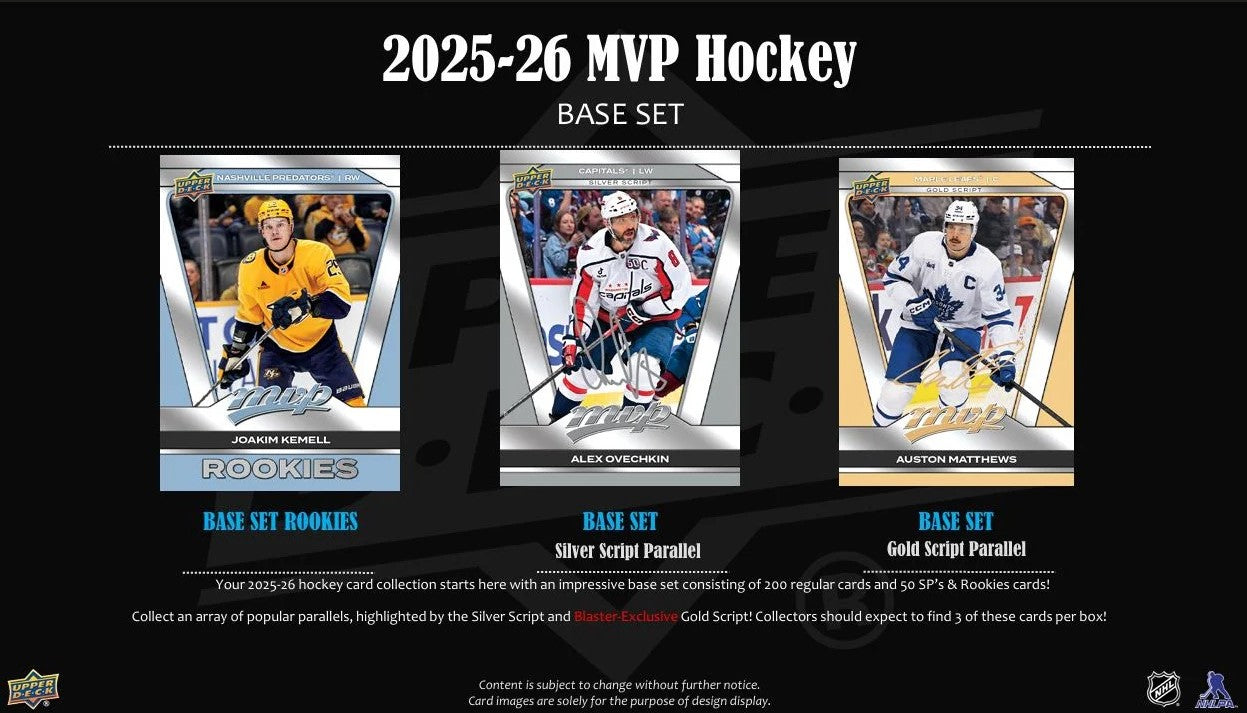 2025-26 Upper Deck MVP Hockey Retail Box 36 Packs per Box 6 Cards per Pack