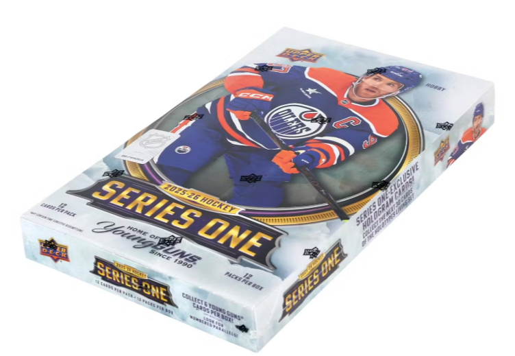 Series 1 sports the first 250 cards of the 2025-26 Upper Deck Base Set. It includes 198 veteran cards, 49 Young Guns cards and three checklist cards. The iconic Young Guns are the most anticipated rookie cards of the season and the Series 1 checklist is loaded with high-end rookies! Collect six (6) Young Guns cards per box, on average!