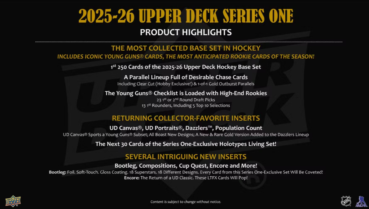 2025/26 Upper Deck Series 1 Hockey Hobby Box 12 Packs Per Box, 12 Cards Per Pack
