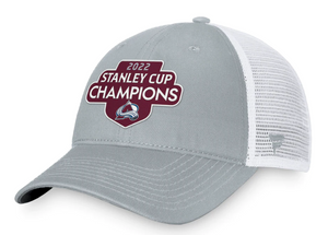Colorado Avalanche Fanatics Branded 2022 Stanley Cup Champions - Locker Room Trucker Adjustable Hat - Gray/White