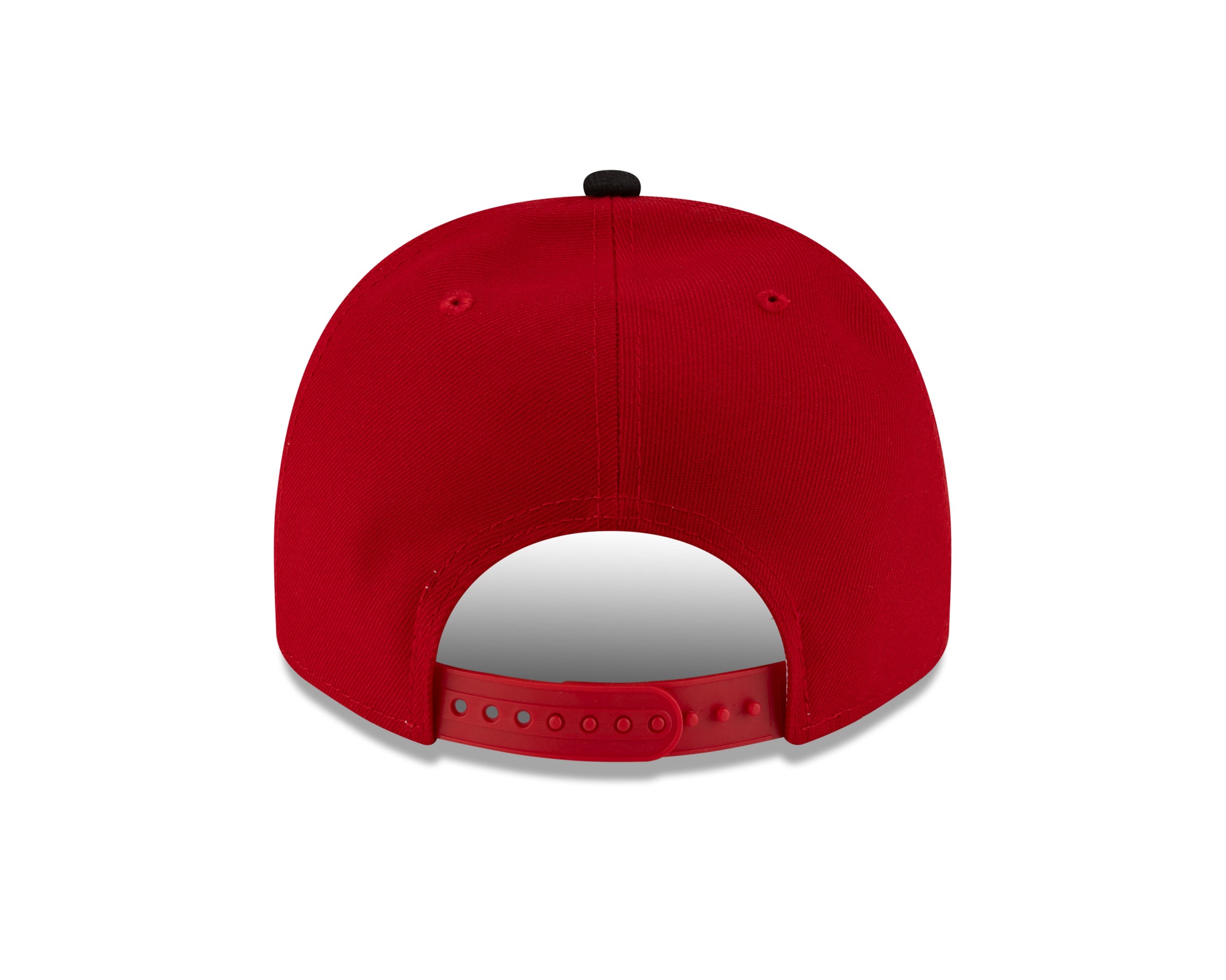 Men's New Era 9FIFTY CFL Calgary Stampeders Big Block 2025 A-Frame Turf Traditions Sideline Two Tone Snapback Hat - Red/Black