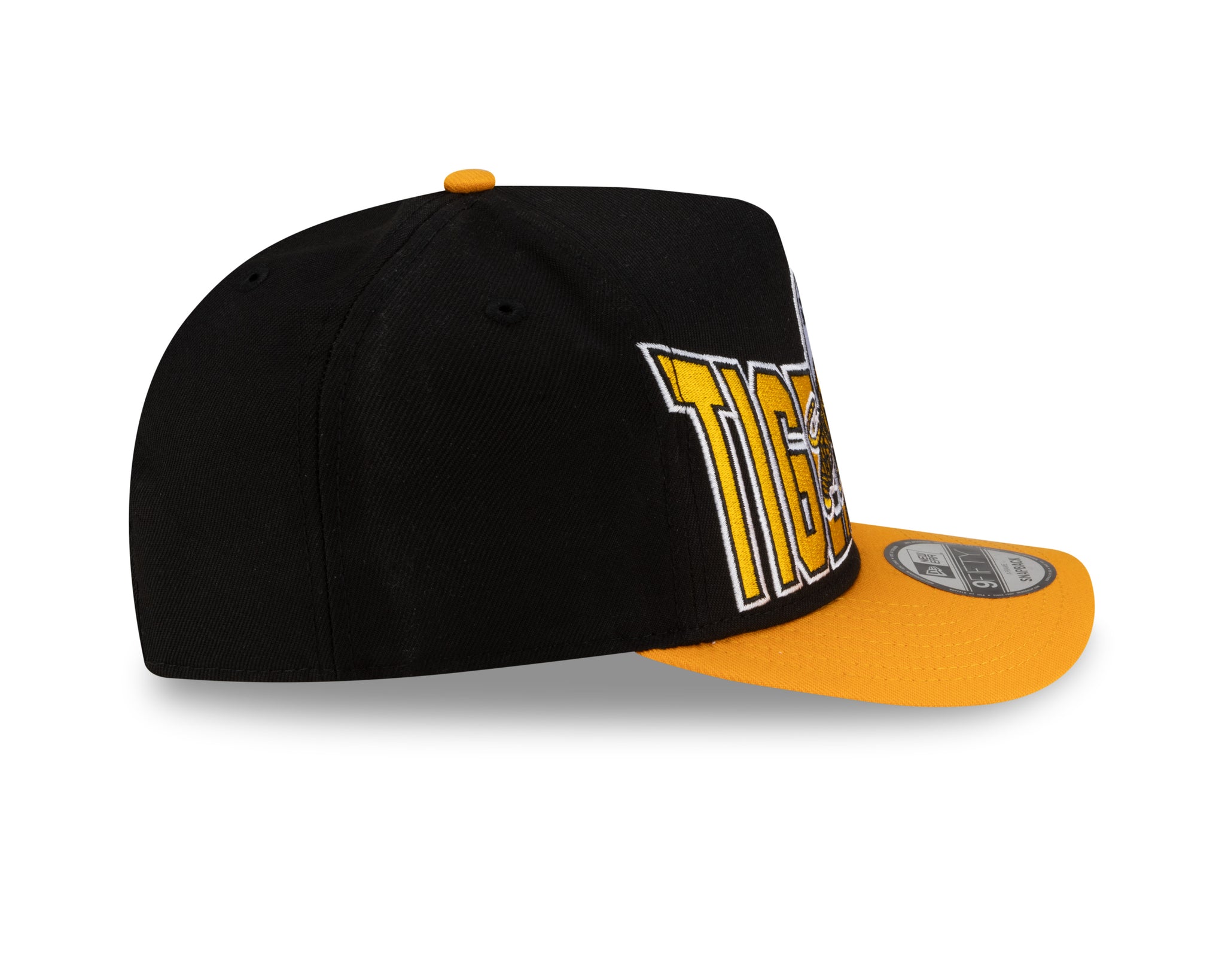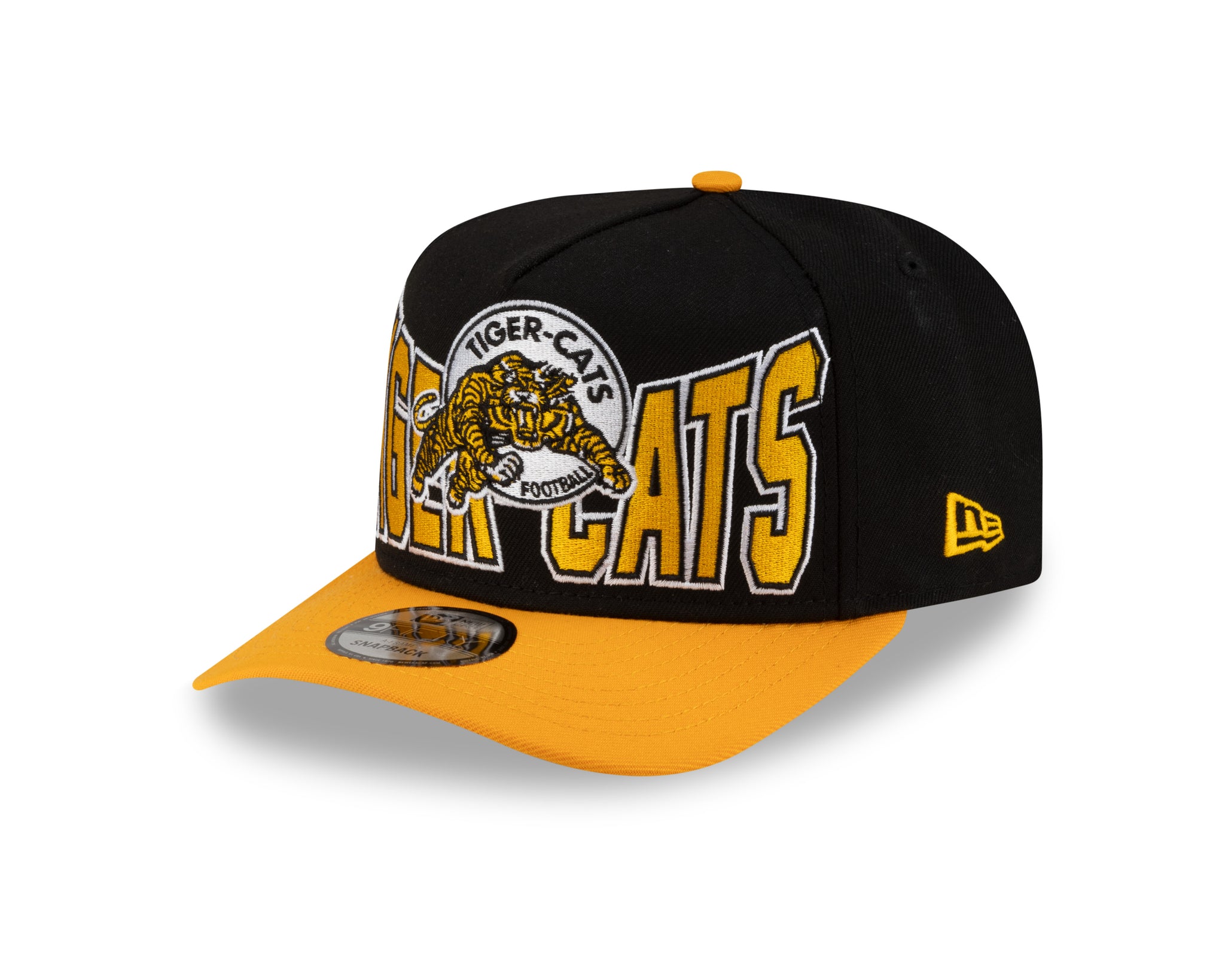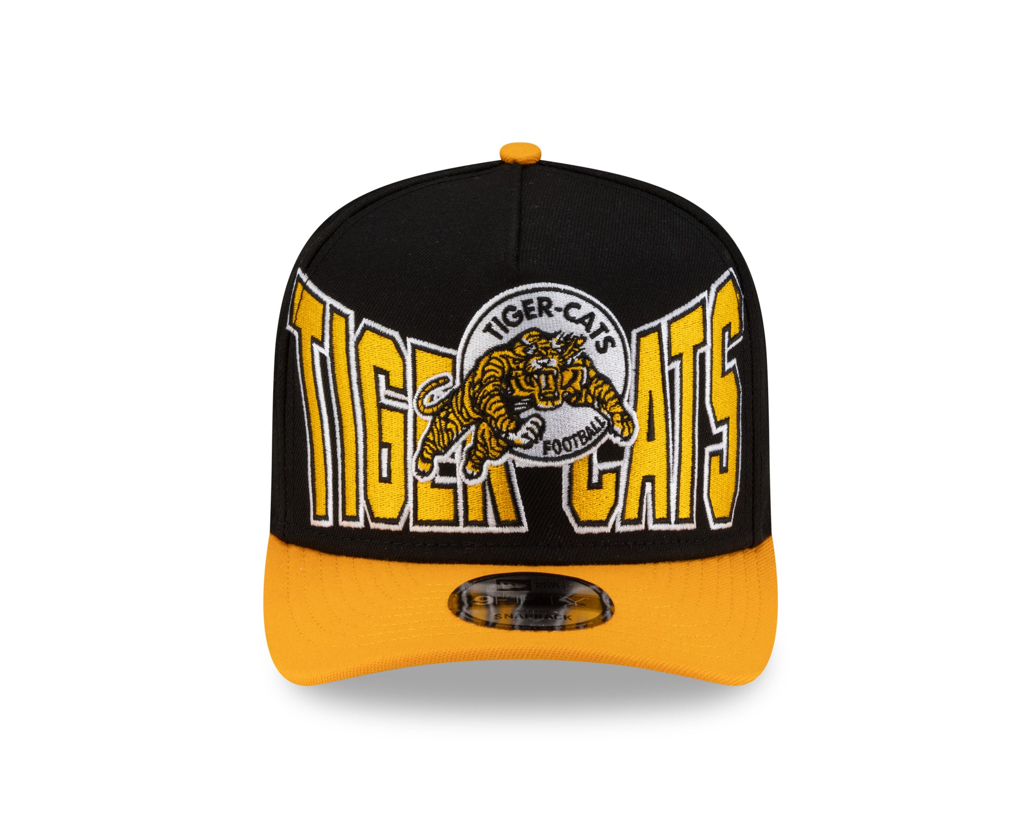 Men's New Era 9FIFTY CFL Hamilton Tiger-Cats Big Block 2025 A-Frame Turf Traditions Sideline Two Tone Snapback Hat - Gold/Black