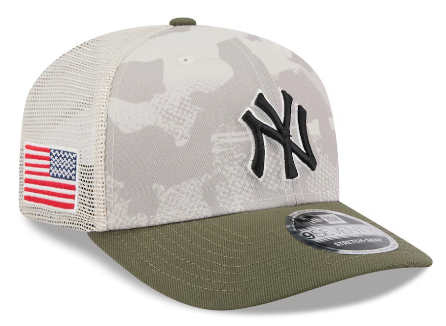 Honor the Armed Forces and your New York Yankees with this 2025 Armed Forces Day 9SEVENTY Stretch-Snap Hat from New Era. The 9SEVENTY provides a modern adjustable fit and versatile style with its structured crown, semi-curved visor and performance stretch sweatband. Embroidered graphics on the six-panel design show off your support for the New York Yankees in style.