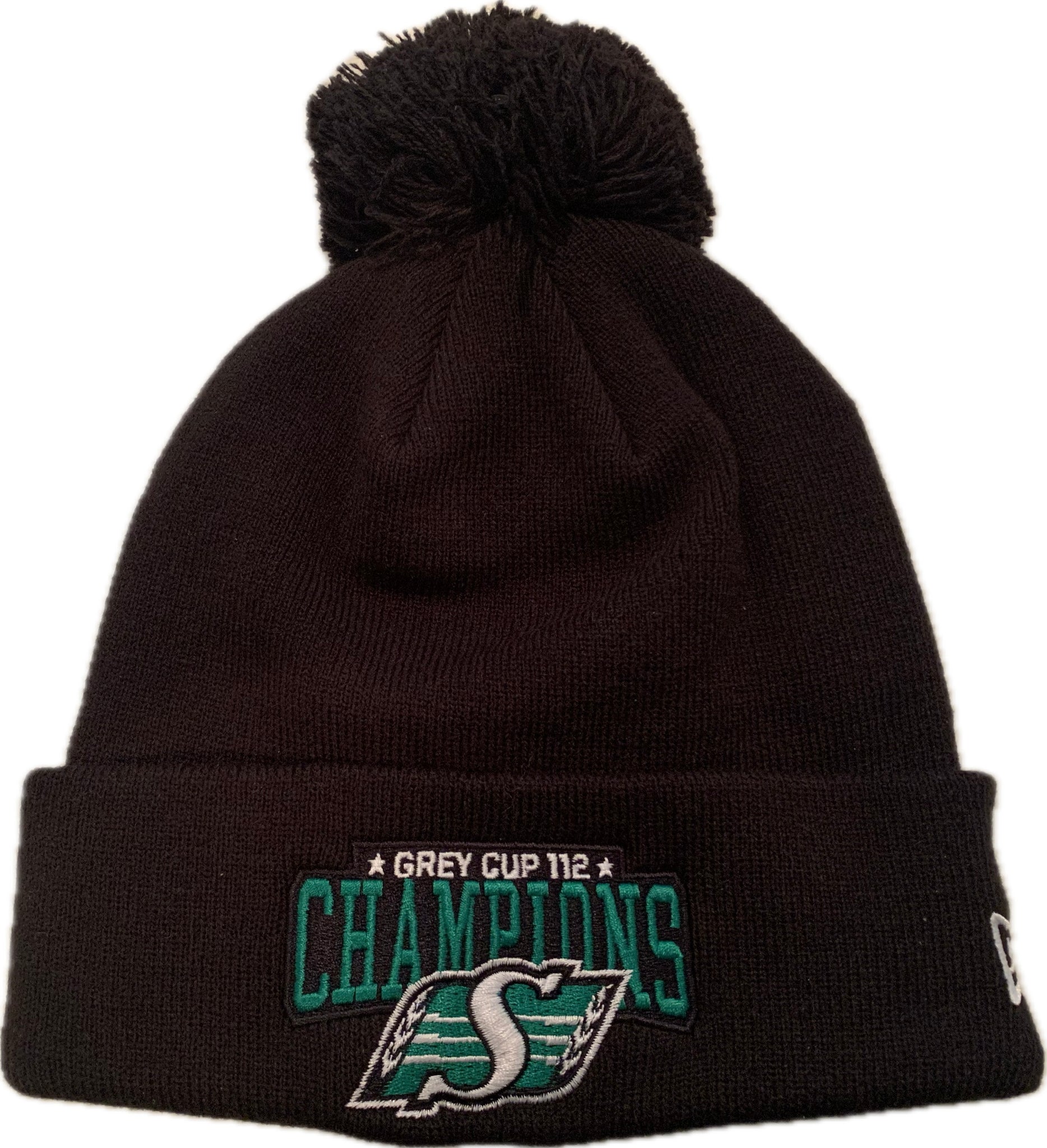 Saskatchewan Roughriders New Era 2025 Grey Cup Champions Black Core Classic Knit Toque with Pom